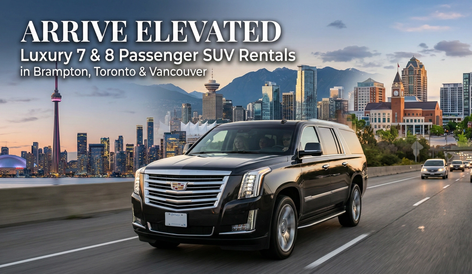 Whether you’re booking a luxury SUV rental in Brampton, a 7 passenger SUV in Toronto, or an 8 passenger SUV in Vancouver, we’re ready.